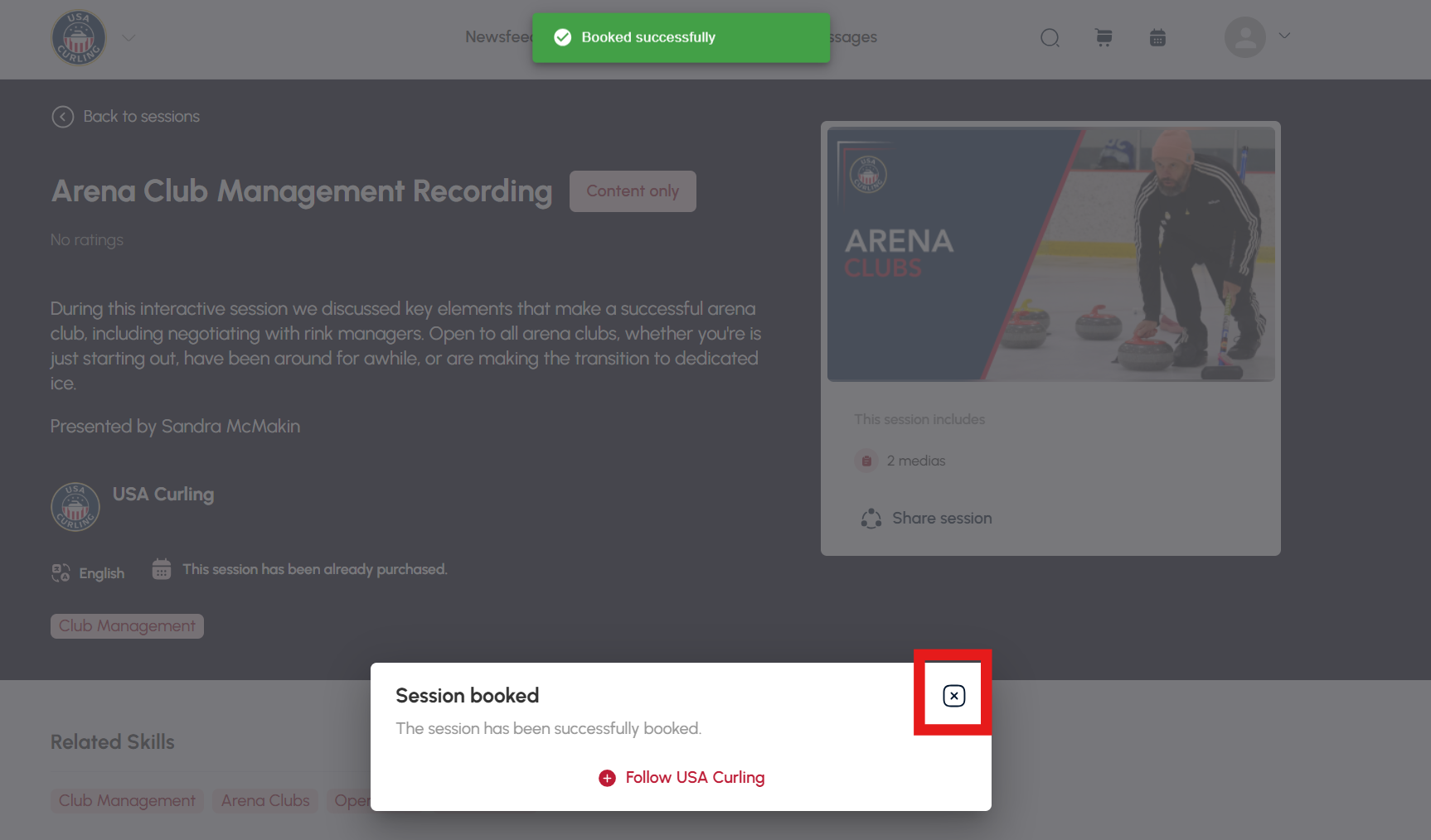 Once you’ve chosen a session that interests you, you can access the content within the session by clicking “Access Content.” You’ll be notified that the “Session has been Booked” this just means you now have access to the materials in that Session.
