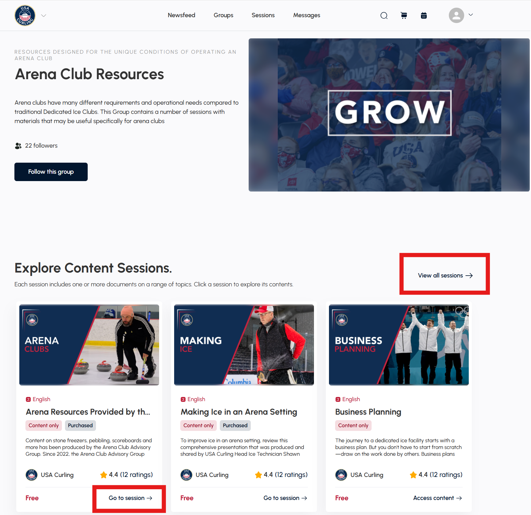 Choose the group that interests you to see what content is available. Content is primarily organized as “Sessions,” which act as groups of documents or resources on a related topic. Within a Group, you can explore the available content Sessions. Don’t forget to click “View All Sessions” (if it is shown) to see what else is available!