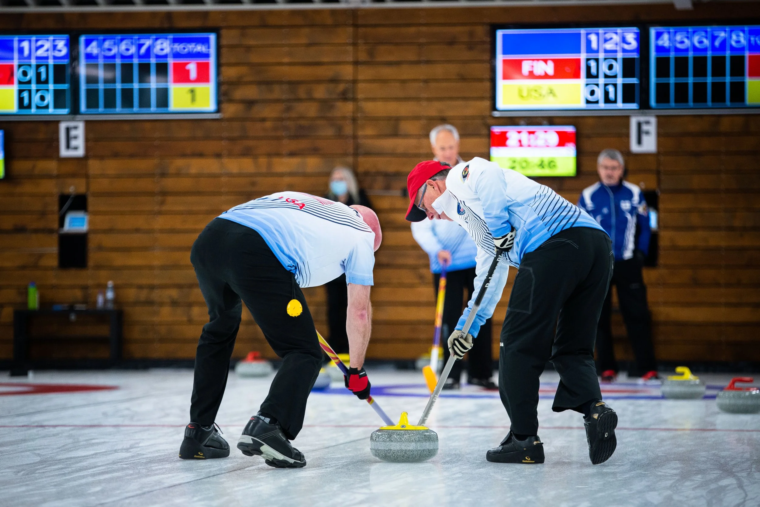In Monday afternoon’s draw of the World Senior Curling Championships 2022, the men and women of Team USA found themselves side by side at Curling Club Trois-Chêne /Genève, competing against Finland in what was the third game of competition for the men and the second game of the competition for the women.