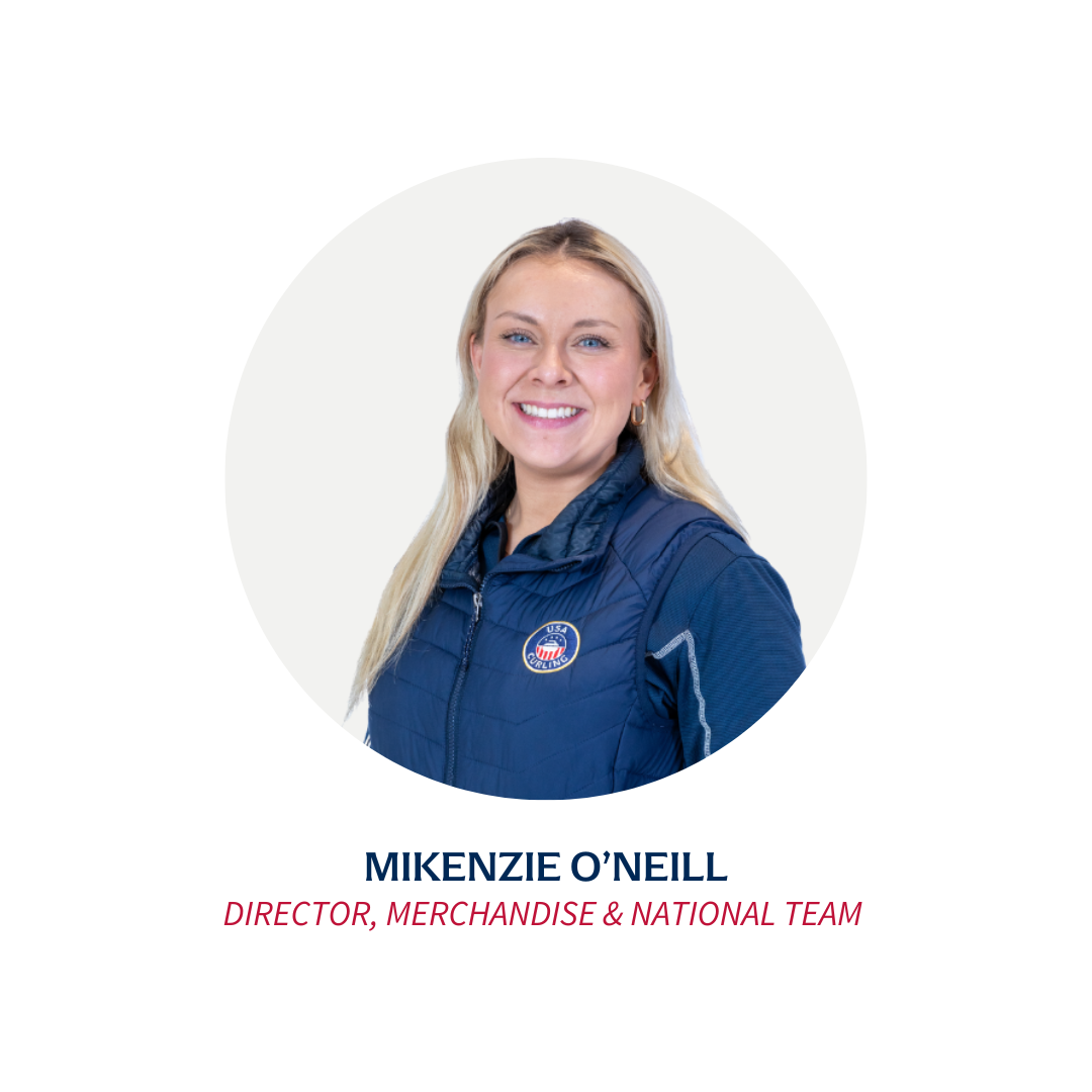 Mikenzie oversees sourcing, ordering, and approval of USA Curling merchandise. Coordinates marketing efforts for merchandise and plans sales at USA Curling events. Manages logistics for National Team needs—including uniforms, apparel, and travel—while ensuring compliance with World Curling requirements as needed.
